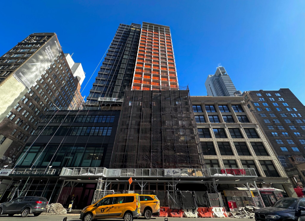 The tower was built on the existing foundations for the cancelled 26-story AC NoMad Hotel, which was planned to become the tallest modular hotel in the world. Work stalled in 2020 just before construction reached street level. Hung Pin Hung’s Brooklyn-based Pro-H Development then purchased the property in 2024 for $30 million after former developer Robert Chun defaulted on the project’s debt, according to The Real Deal.